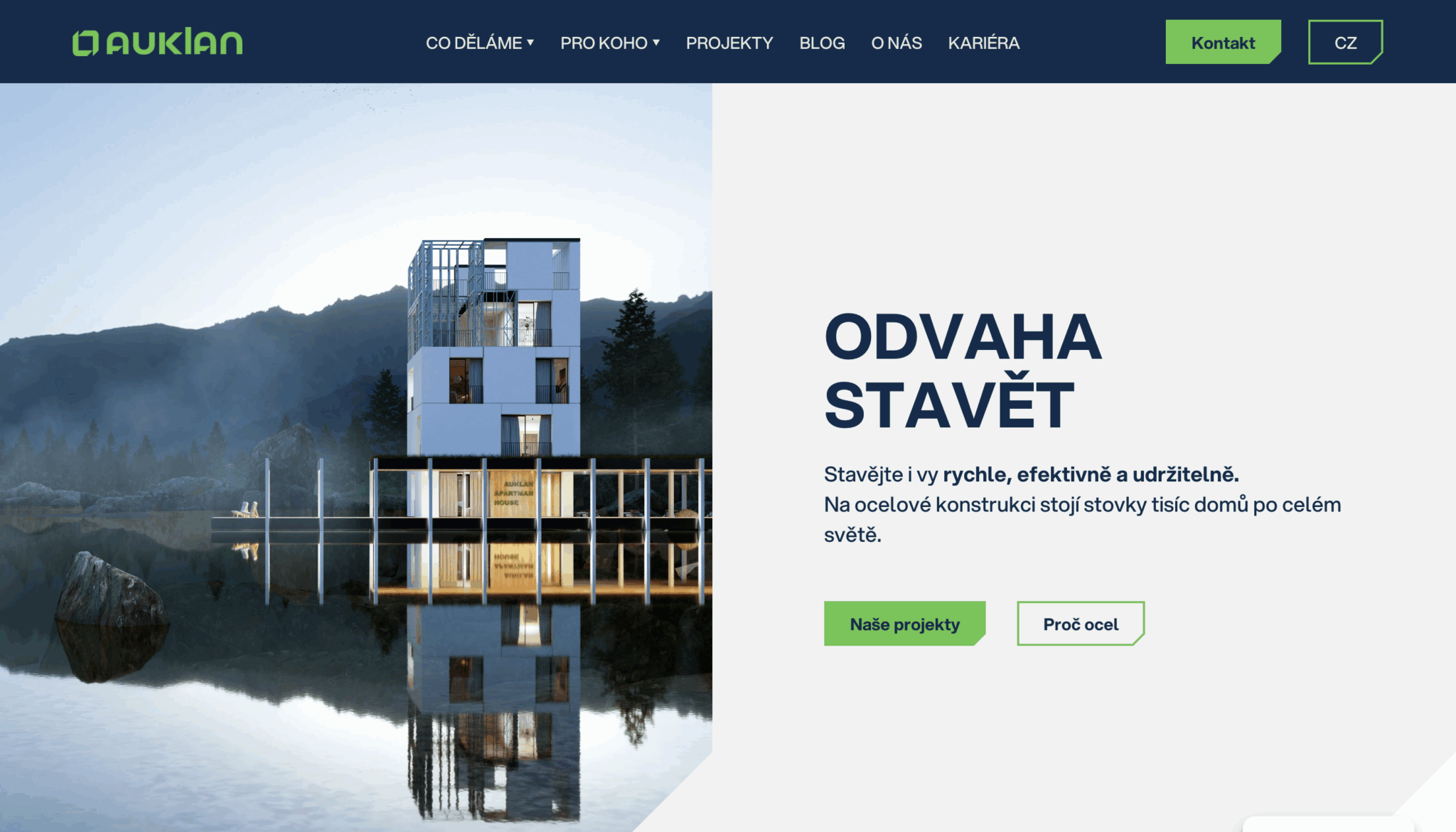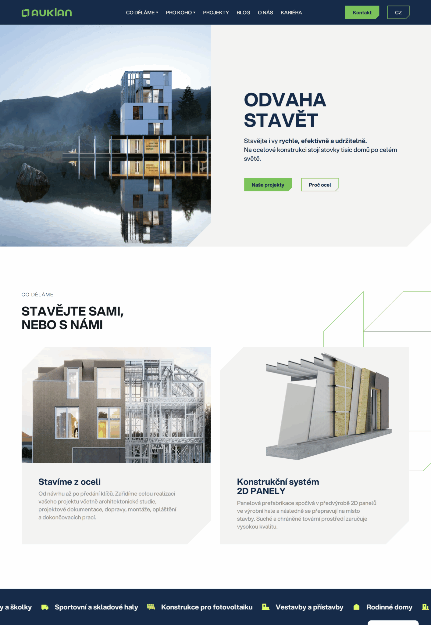 Auklan a.s. is an innovative Czech construction company bringing a revolution to building with steel structures and prefabricated 2D panels. Their system enables fast, precise and eco-friendly construction of a wide range of buildings from family houses and kindergartens to industrial halls. Auklan is built on values like sustainability, efficiency, and quality and they expect their digital presence to reflect that as well.